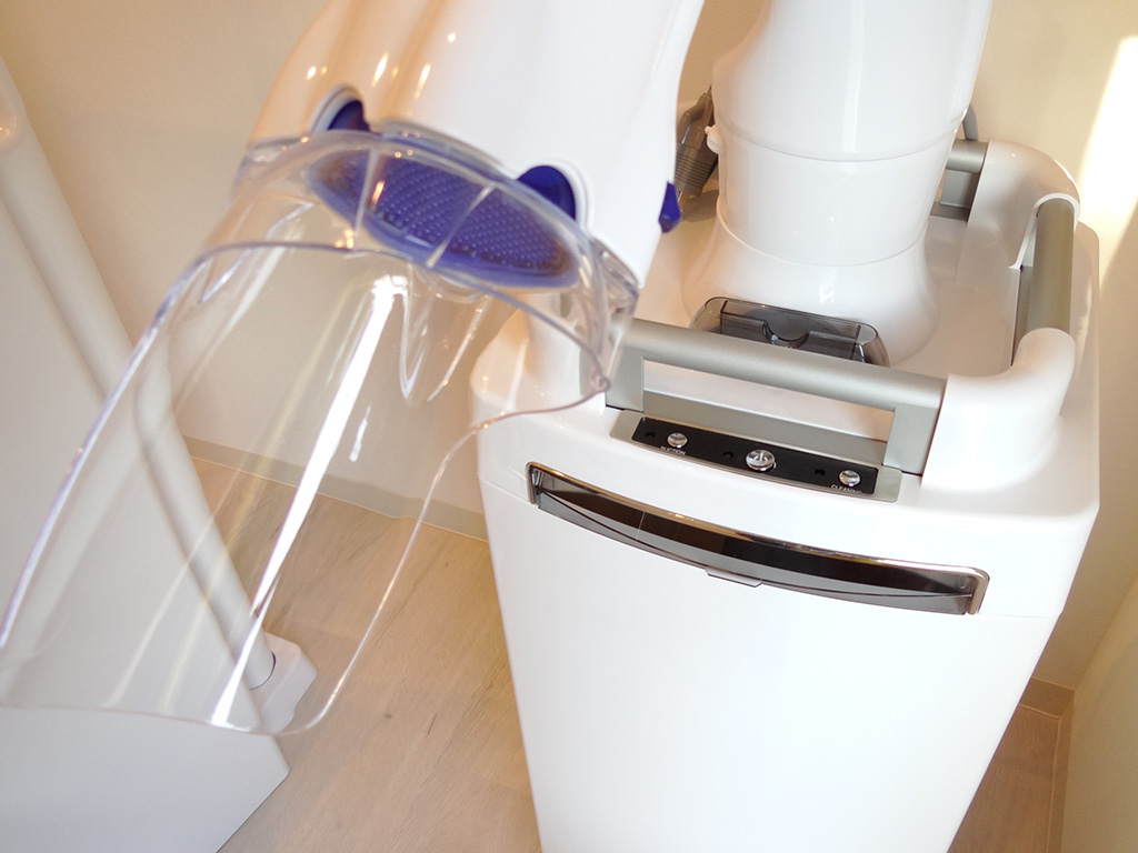 歯を削ったり「かぶせ物」の調整をする時に発生する歯の削りかす、金属片等の様々な細菌汚染物資を吸引し、患者さんの健康を守る医療機器です。