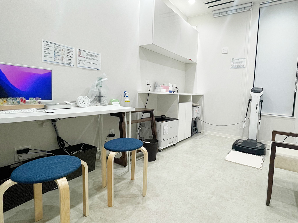健口から健康そして健幸に。より豊かな生活のためには原因をしっかり解決する事、そして口腔内の改善が全身にどのように影響していくのかを把握していくことが大切です!口腔機能が改善した後、食生活がどの様に変化し、身体機能がどの様に良くなったかをしっかり調べ心身ともに健康になっていくことが健幸への道であると感冴えています。そのため、検査室では食生活のヒアリング、管理栄養士からの指導やインボディによる体組成のチェックなどを行なっています。