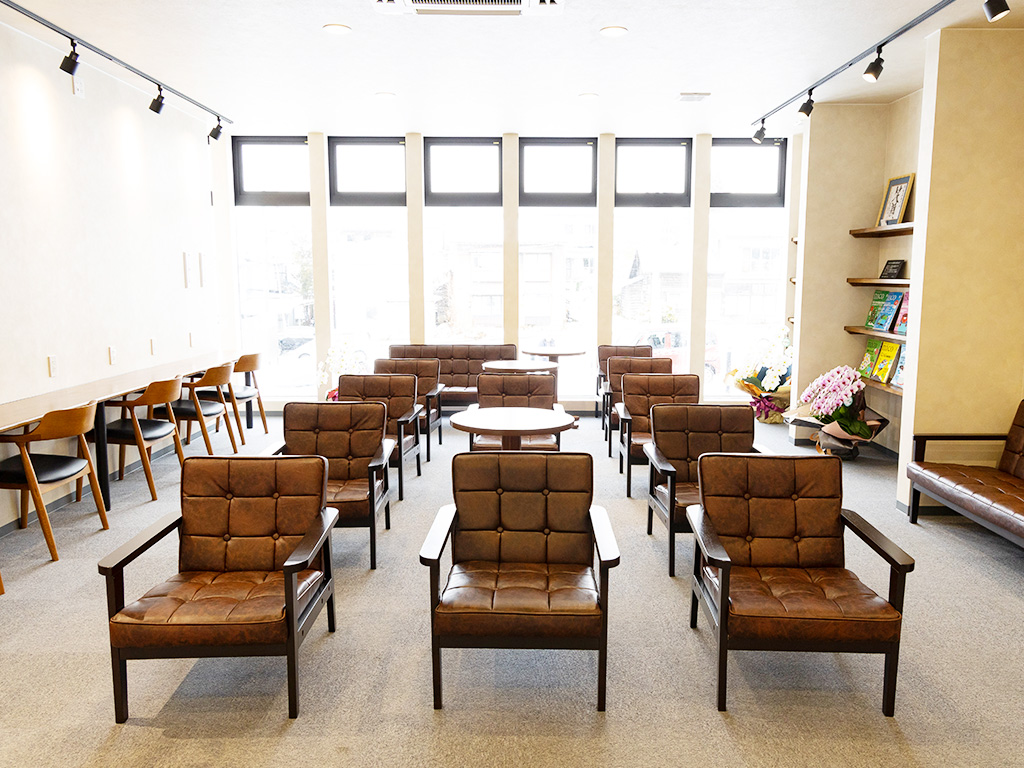 院内wifi完備、ゆったりくつろげるソファー席、隙間時間でお仕事ができるテーブル席もご用意しています。